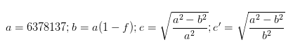 为什么需要单独建立一个坐标系呢?这是由于地球表面地势复杂,有山有海,高低不平。需要建立一个简单而精确的近似数学模型,大家决定采用椭球体作为地球的近似。而 G 坐标系就描述了一个椭球体,给出该椭球体的基本参数:长半轴,短半轴,第一偏心率,第二偏心率,扁率,曲率半径(米):