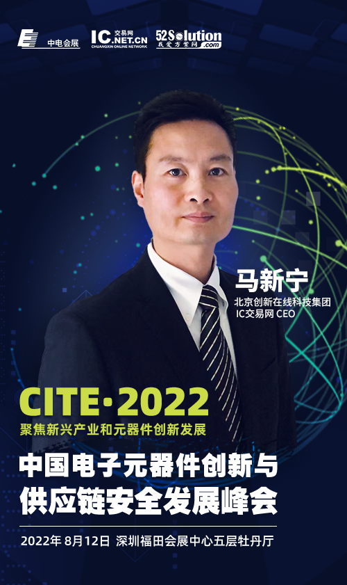 2022年8月12日,由中国电子器材有限公司主办,中电会展与信息传播有限公司、IC交易网、我爱方案网承办的“2022 CITE中国电子元器件创新与供应链安全发展峰会将与中国(深圳)电子信息博览会(CITE 2022)同期举行。届时,来自相关主管司局、产业研究所、市场分析机构、科技企业、半导体IC原厂、主要方案商、顶级代工厂的10余位演讲嘉宾将发表精彩的主题演讲,欢迎行业感兴趣的同仁莅临!