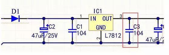 旁路电容实际也是去耦合的,只是旁路电容一般是指高频旁路,也就是给高频的开关噪声提高一条低阻抗泄放途径。高频旁路电容一般比较小,根据谐振频率一般取 0.1F、0.01F 等。而去耦合电容的容量一般较大,可能是 10F 或者更大,依据电路中分布参数、以及驱动电流的变化大小来确定。如图C3为去耦电容