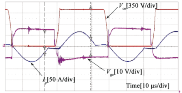 当然,IGBT能应用的ZVS拓扑怎么能少的了LLC呢,IGBT不光可以用于LLC拓扑,还同样能实现大功率的输出,各位可以找找2021年中车时代电气工程师张小勇发表的论文,“LLC谐振变换器中IGBT的死区时间分析及优化设计”,采用IGBT搭建了60KW的LLC变换器,如图九和图十,解决了IGBT输出电容的非线性变化导致的死区时间设置困难的问题,有助于推动LLC谐振软开关技术在大功率变流器中实现广泛应用。