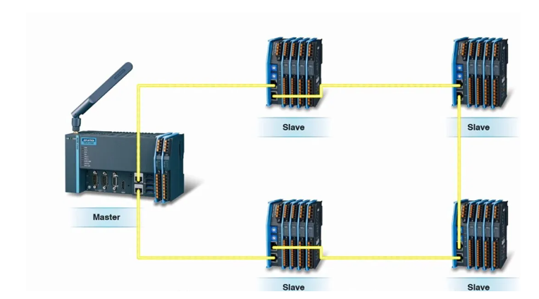 EtherCAT 网络可连接多达 65535 个设备,网络容量几乎没有限制,可以将模块化的 I/O 设备设计为每个 I/O 片都是一个独立的 EtherCAT 从站