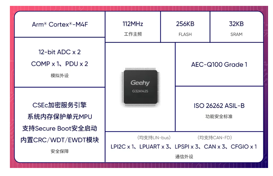 极海推出了G32A1425系列精简高效的汽车通用MCU,旨在以更优性价比匹配功能定义明确、存储需求适中的应用场景。