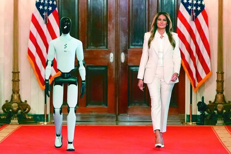 美国第一夫人梅兰妮亚于昨日26号在白宫一场活动中,意外邀请Figure AI公司的第三代人形机器人“Figure 3”作为嘉宾,与其共同走上红毯。