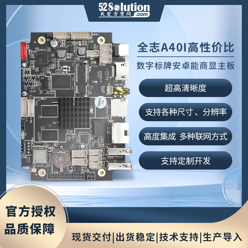 方案介绍:高性价比数字标牌主板YNH-430G是一个智能商显主板,可提供定制开发。采用全志A40i,Cortex-A7四核CPU,支持Android4.4/6.0系统,主频高达1.2GHz,性能突出,性价比高。GPU采用Mali-400MP2,一流的图片和视频处理能力,是您在智能商显领域最佳的选择。普遍适用于广告机、数字标牌以及自助终端等。支持红外、光学、电容、电阻等多种主流触摸屏,支持免驱触摸屏的HID配置,无需调试。支持行业主流USB/串口设备,提供demo测试程序。