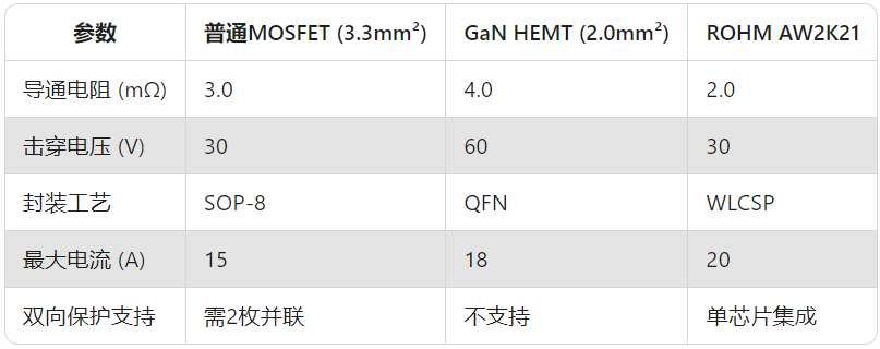 1. 空间效率矛盾:通过WLCSP工艺实现芯片级封装,相比GaN方案节省42%布板空间
