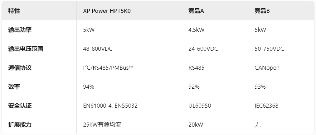 结论:HPT5K0 在 功率范围、通信灵活性、扩展能力 方面优于竞品,尤其适合高电压、高可靠性应用。