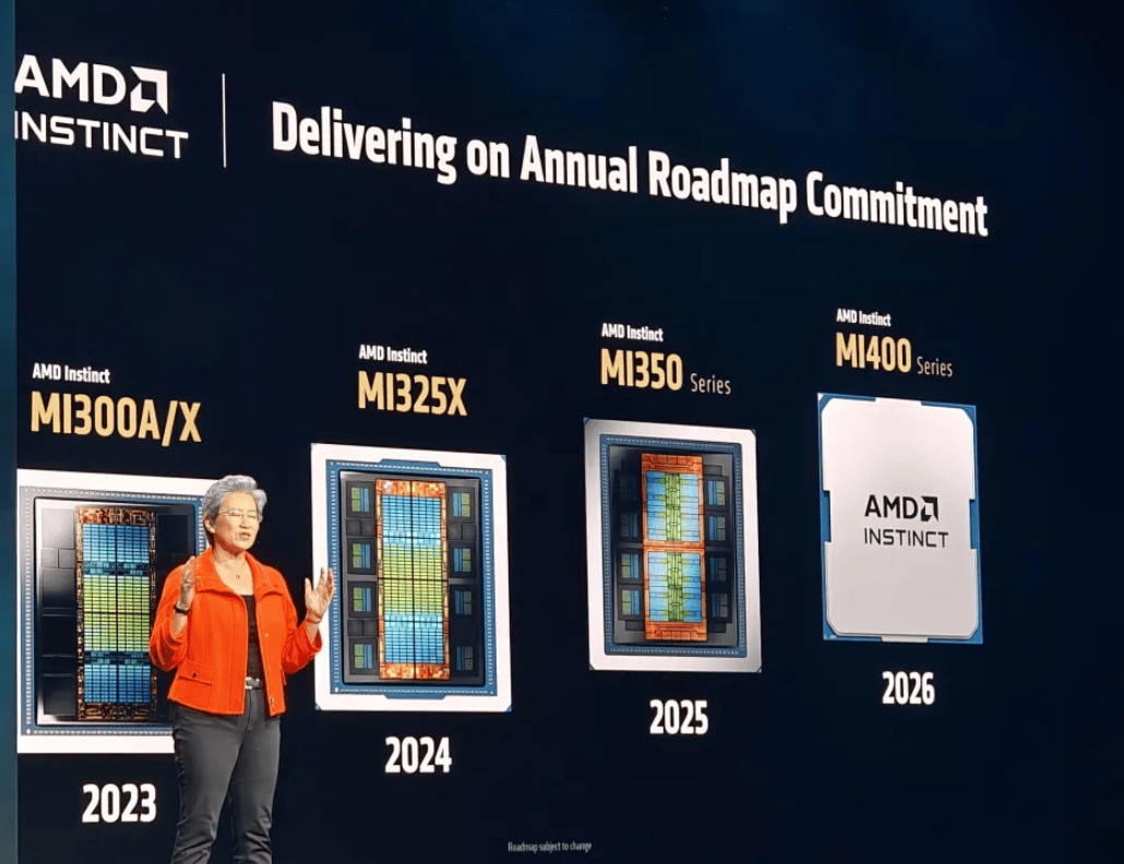 1. 五年路线图持续迭代(MI400已披露2nm工艺与40 PFLOPs FP4算力)