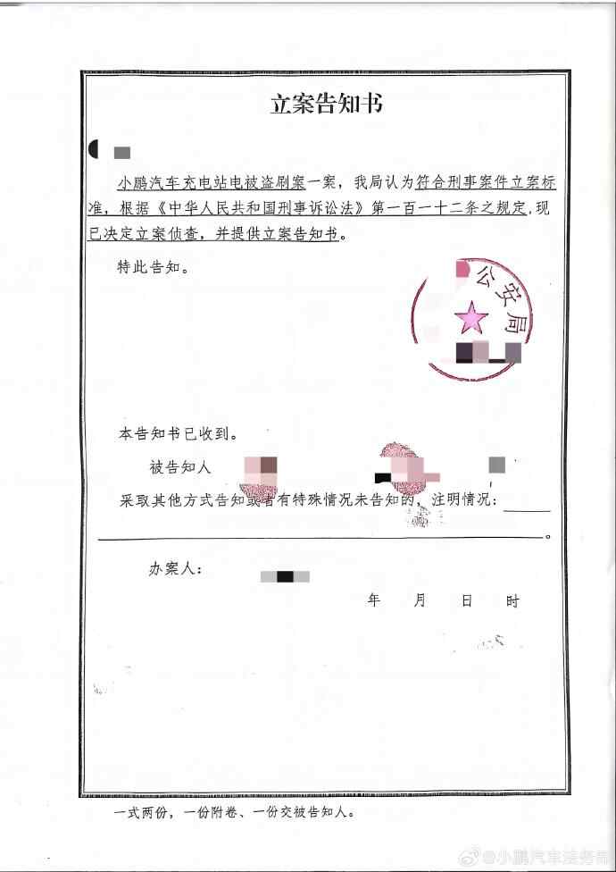 小鹏汽车发现存在不法分子通过非法盗电设备、注册虚假用户账号等手段,实施或参与“盗电”行为。