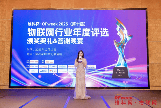 2025年12月19日,由高科技行业门户OFweek维科网主办、OFweek物联网承办的“维科杯·OFweek2025(第十届)物联网行业年度评选”颁奖典礼暨答谢晚宴在金茂深圳JW万豪酒店圆满落幕。
