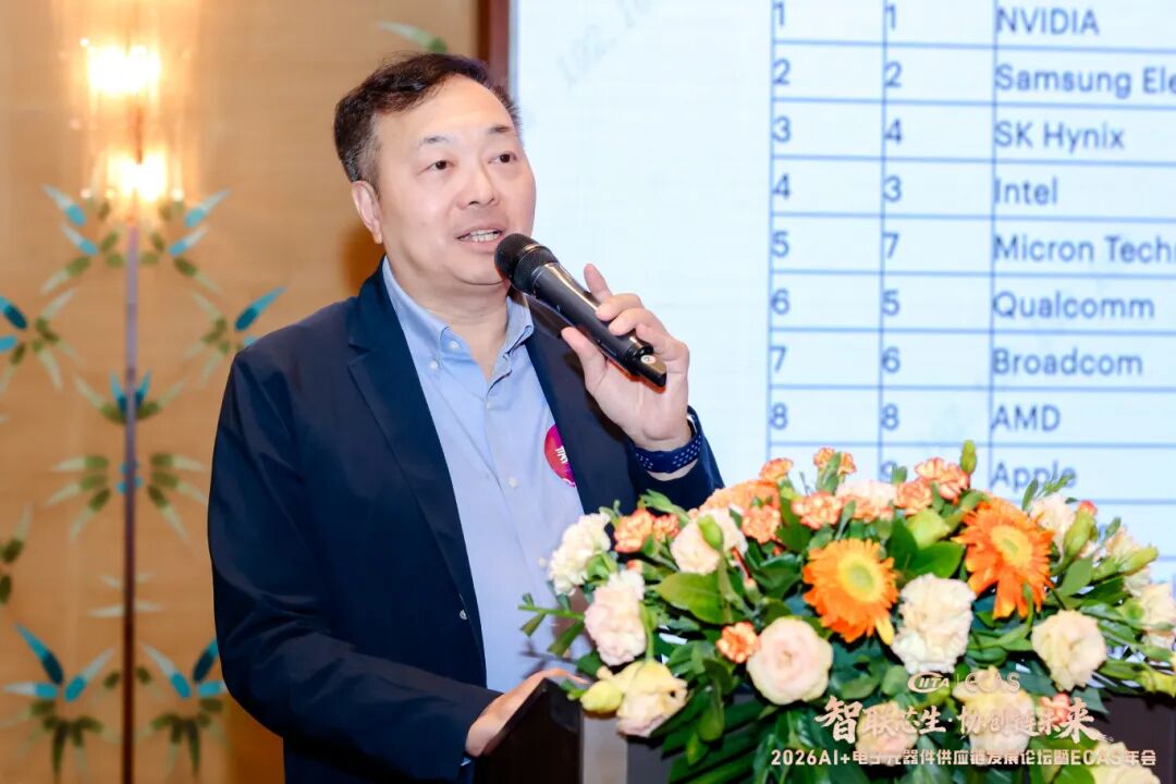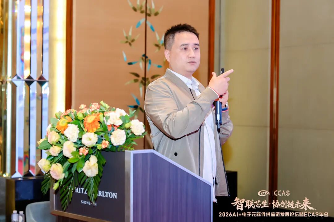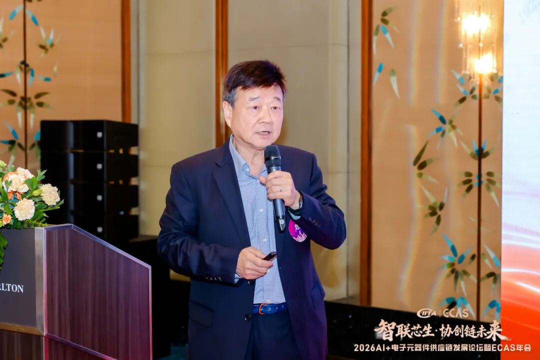 紧接着,ECAS特聘专家、璞励咨询董事长麦满权博士以“‘人工智能+’重塑电子产业未来”为题展开演讲。麦博士深入浅出地分析了AI技术与产业融合对电子元器件供应链带来的颠覆性变革,同时结合行业现状,对2026年全球半导体市场的热点趋势作出了前瞻性预判与展望。