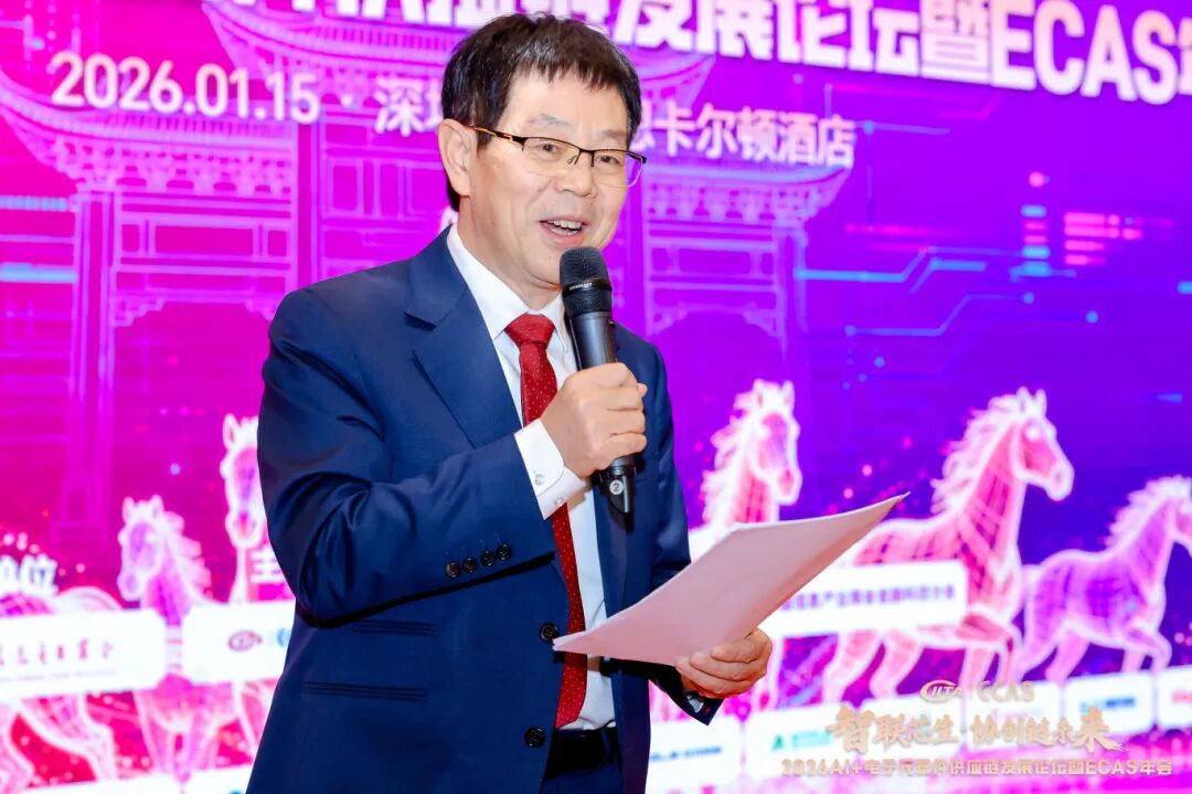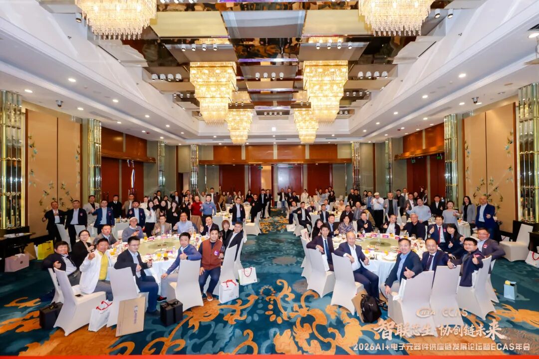 2026年1月15日,由中国信息产业商会电子元器件应用与供应链分会(ECAS)主办的“2026AI+电子元器件供应链论坛暨ECAS年会”在深圳隆重召开。ECAS会员企业代表及特邀嘉宾齐聚一堂,围绕“智联芯生·协创链未来”主题,共话AI+浪潮下电子元器件供应链产业的变革之路,共谋新年行业发展的新机遇与新蓝图。
