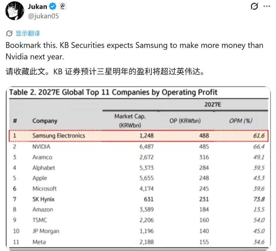 三星2026年第一季度营业利润预计将达到57.2万亿韩元,同比激增700%,创下韩国企业单季利润新纪录
